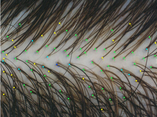 また色、紅斑、フケ、毛髪周囲の紅斑測定、密度、直径、長さの自動検出が行えます。